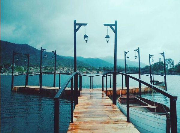 Khi tới đây, bạn như lạc bước vào khung cảnh thiên nhiên thơ mộng với hồ nước trong xanh cùng những ngọn núi lấp ló phía xa, những chiếc thuyền bềnh bồng trên sóng nước, cây cầu nổi lãng mạn và cả những đàn cừu nhởn nha trong ánh chiều vàng rực… Tất cả tạo nên một bức tranh phong cảnh hữu tình khiến bất cứ ai cũng đều mê đắm. Đặc biệt, cây cầu gỗ ở đây lại mang phong cách cổ điển với những chiếc đèn treo cao khiến cho những cặp đôi không thể bỏ qua khung cảnh lãng mạn này.