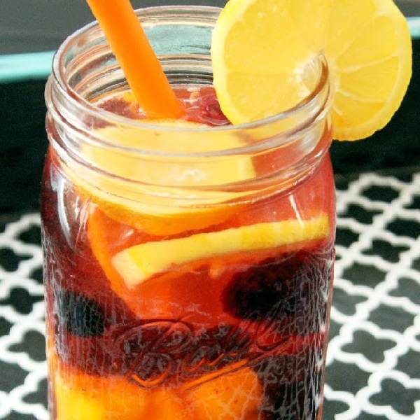 Bạn cho tất cả nguyên liệu vào bình thủy tinh để trong tủ lạnh 1 tiếng trước khi dùng. Bạn có thể vắt trực tiếp nước cam thay vì cắt lát. Có thể thay cam bằng quýt.