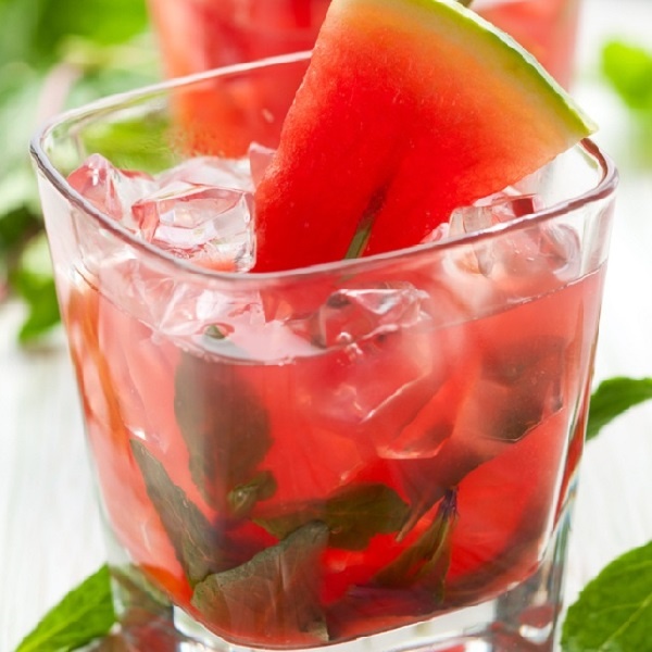 Bạn cho 5-7 lá bạc hà và 3 cốc dưa hấu thái miếng vào bình thủy tinh, đổ đầy nước và để trong tủ lạnh 1-2 tiếng trước khi dùng. Dưa hấu giàu vitamin C giúp làm trắng da, giải nhiệt cho da hiệu quả.