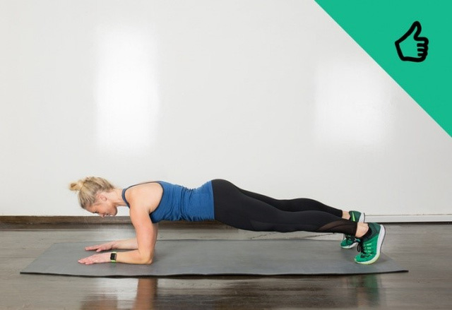 Từ tư thế nằm sấp, sử dụng cẳng tay và các đầu ngón chân để nâng toàn bộ cơ thể lên khỏi mặt đất.