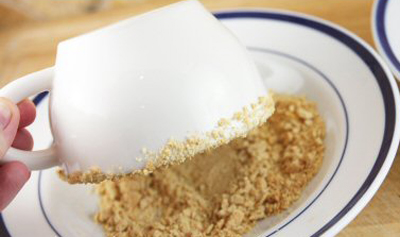 Bước 2: - Nhúng miệng ly qua một lớp bơ, sau đó đến một lớp vụn bánh quy. |